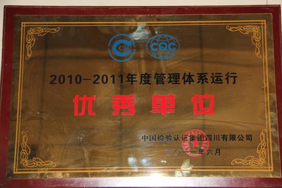 近日,在由中國檢驗認證集團四川有限公司組織評選管理體系運行優(yōu)秀單位的活動中,我公司榮獲“2010-20...